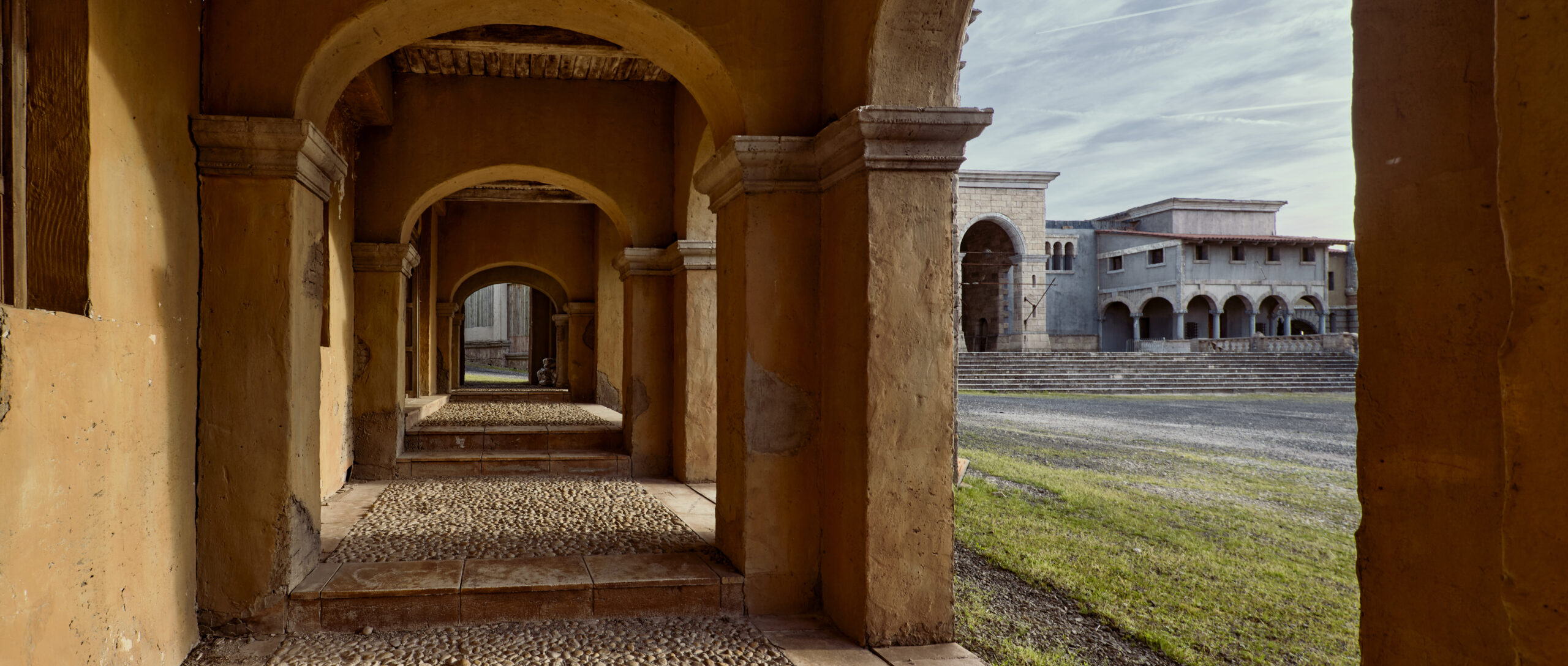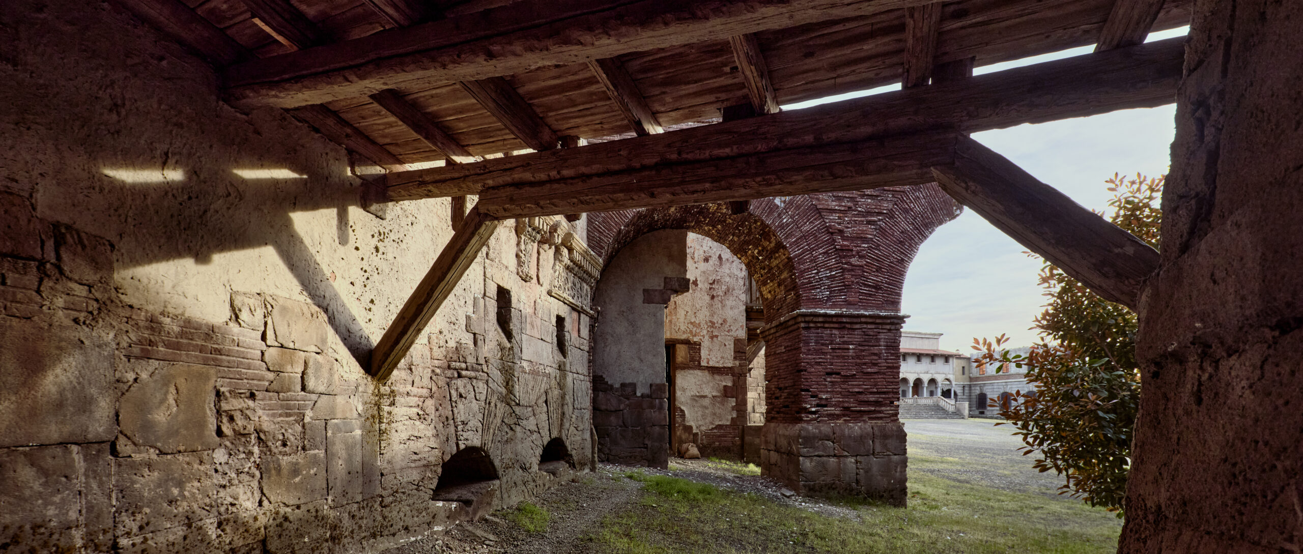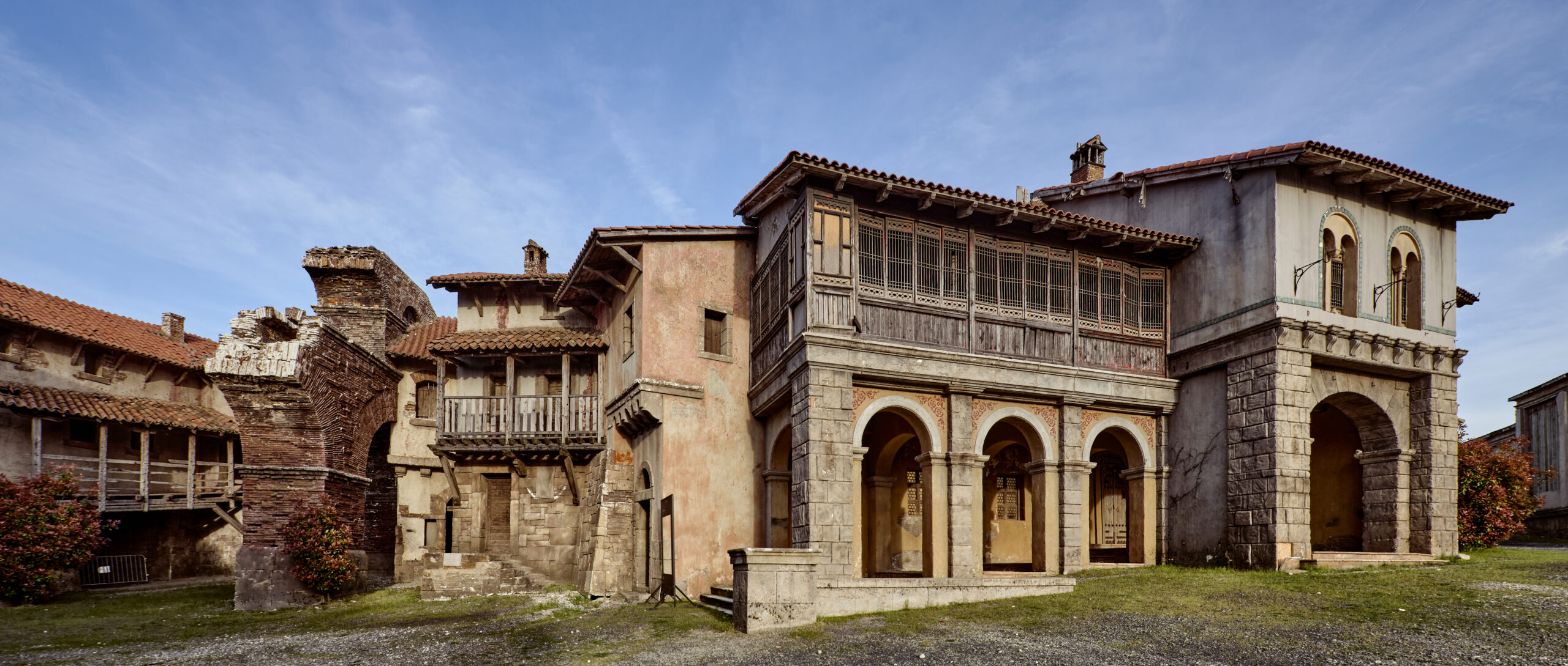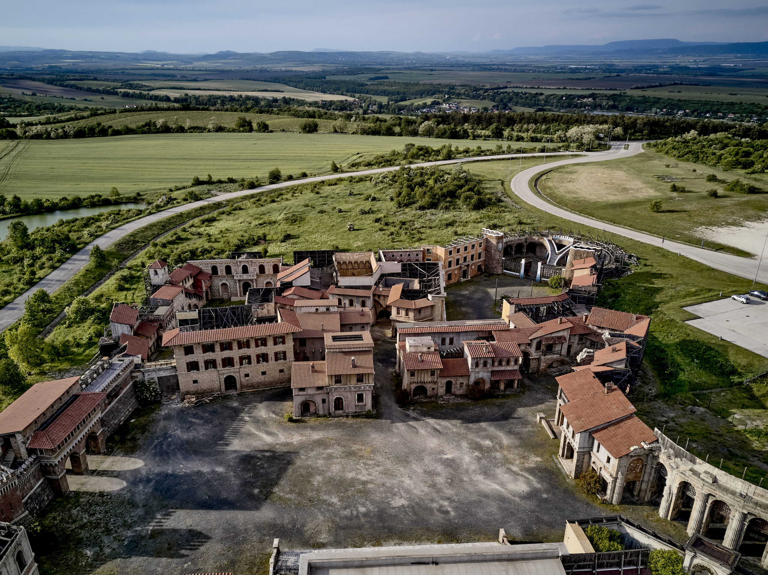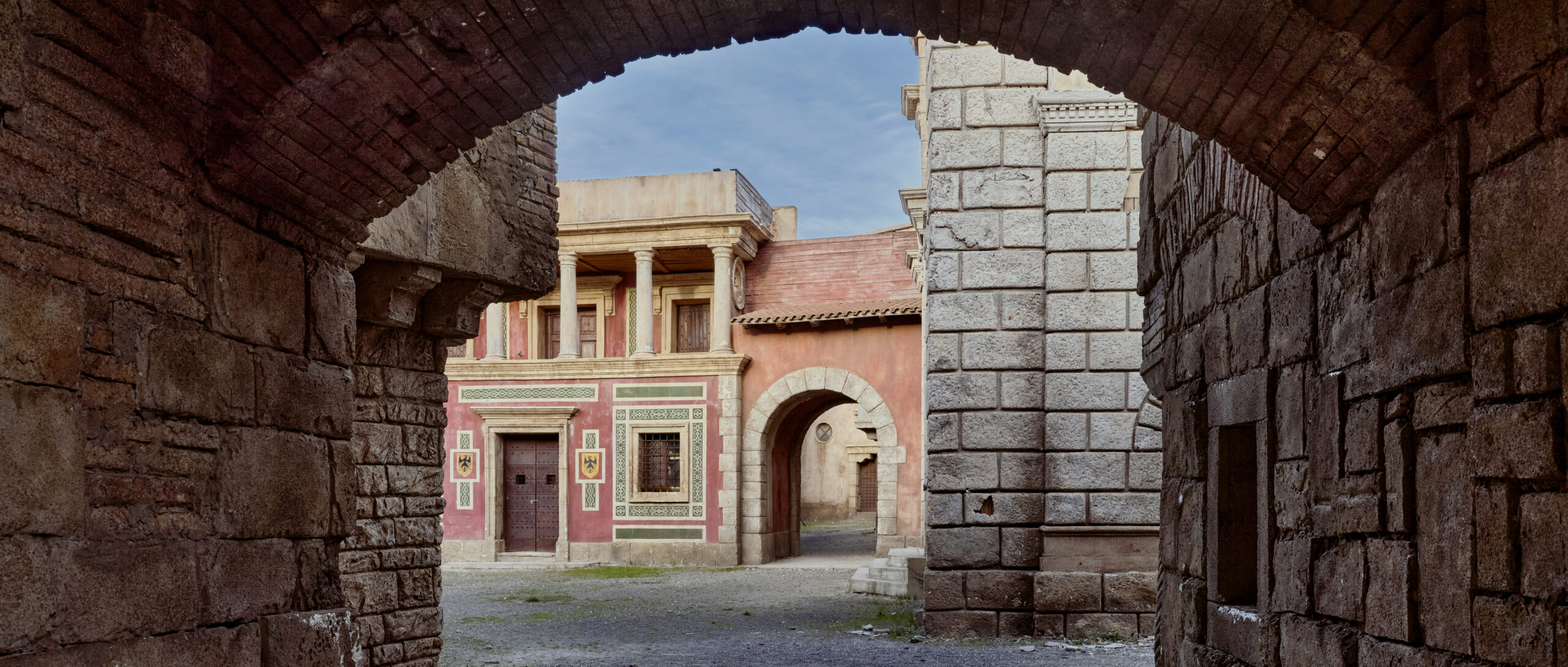 The renaissance backlot set was built for the TV series The Borgias. The impressive backlot was designed by Francois Seguin. The stunning set portrays numerous regions of historical Italy, from The Vatican to Florence. The more than 1 hectare renaissance city has various styled buildings and gates, courtyards, alleys, interiors, prison cell, a piazza and Vatican façade.
